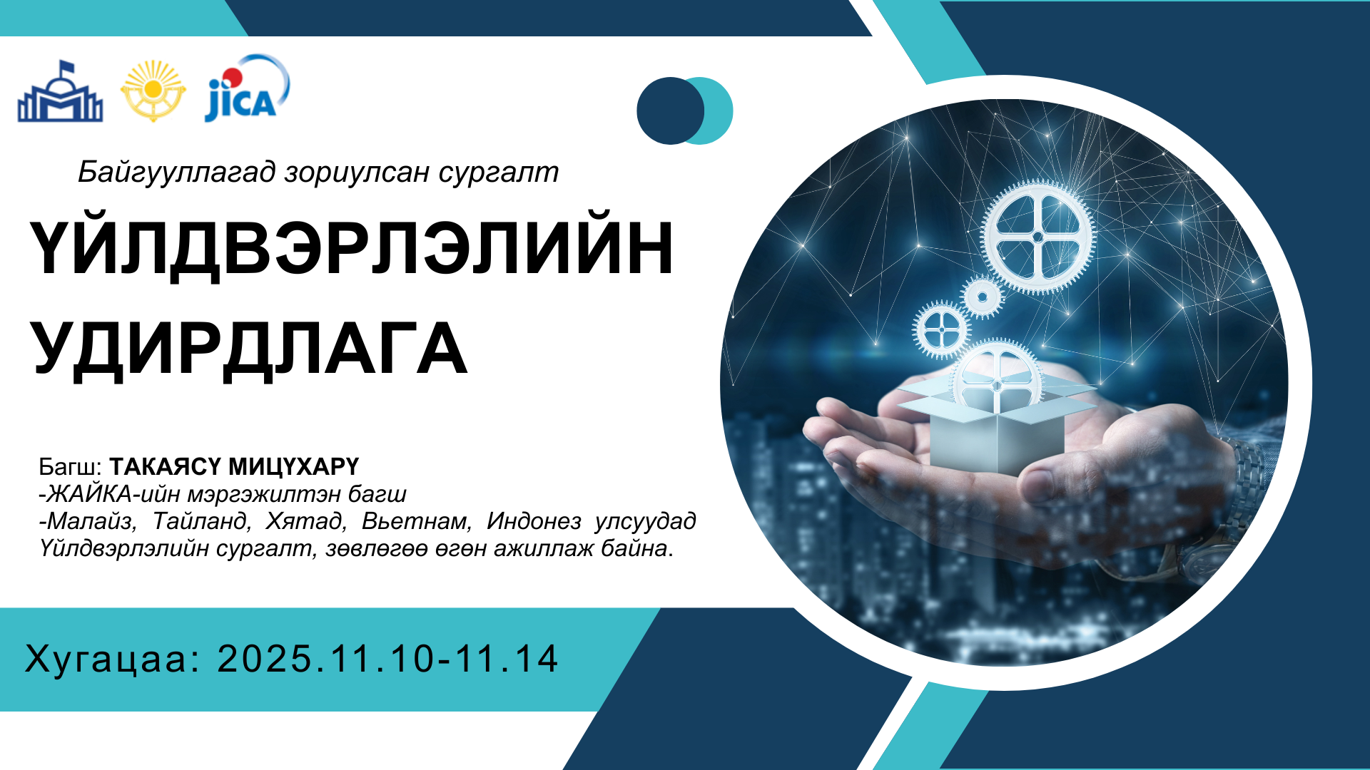 2025 оны 11 сарын 10-наас 14-нд Үйлдвэрлэлийн удирдлага сургалтын япон мэргэжилтэн багш Такаясү Мицүхарү Монголд ирэх тул байгууллага дээрээ сургалт авахыг хүсвэл бидэнтэй холбогдоорой.